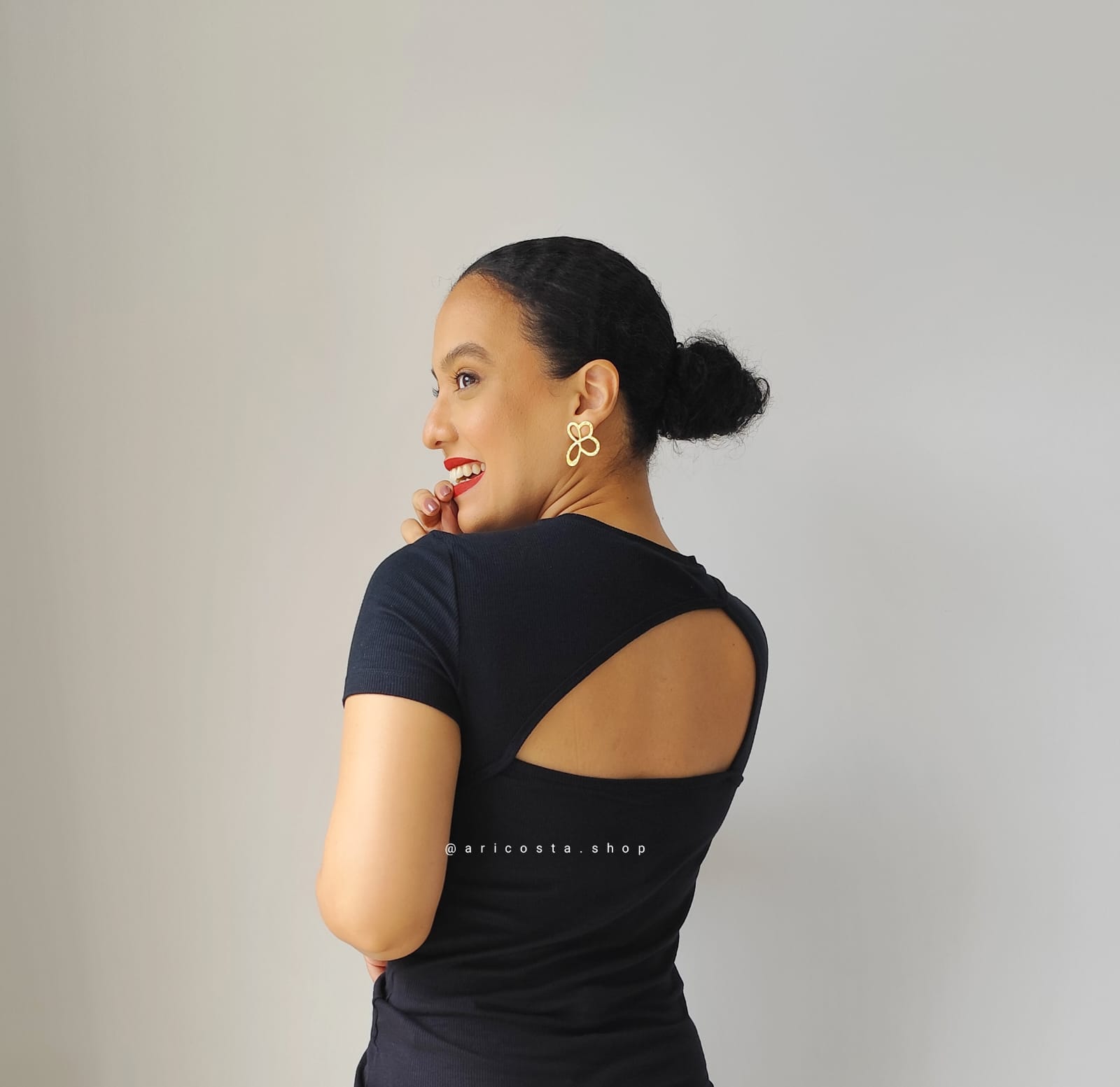 Descrição : Blusa confeccionada em malha algodão, com elastano, decote nas costas