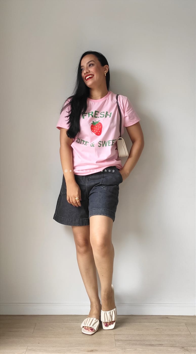 T-shirt com manga e gola ‘’ O ‘’ modelagem oversized ( maior )
