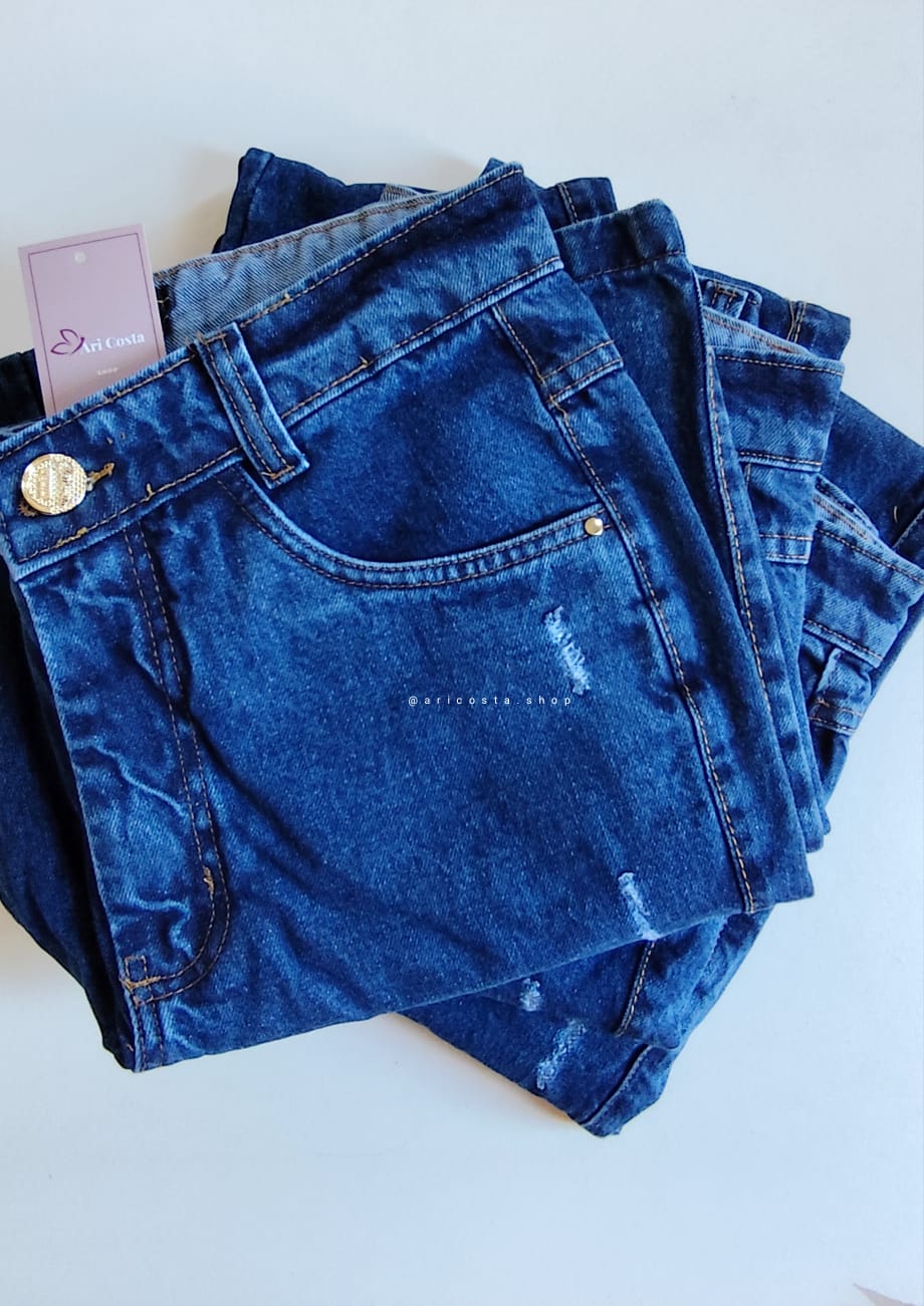Modelagem reta, com bolsos, leve destroyd frontal