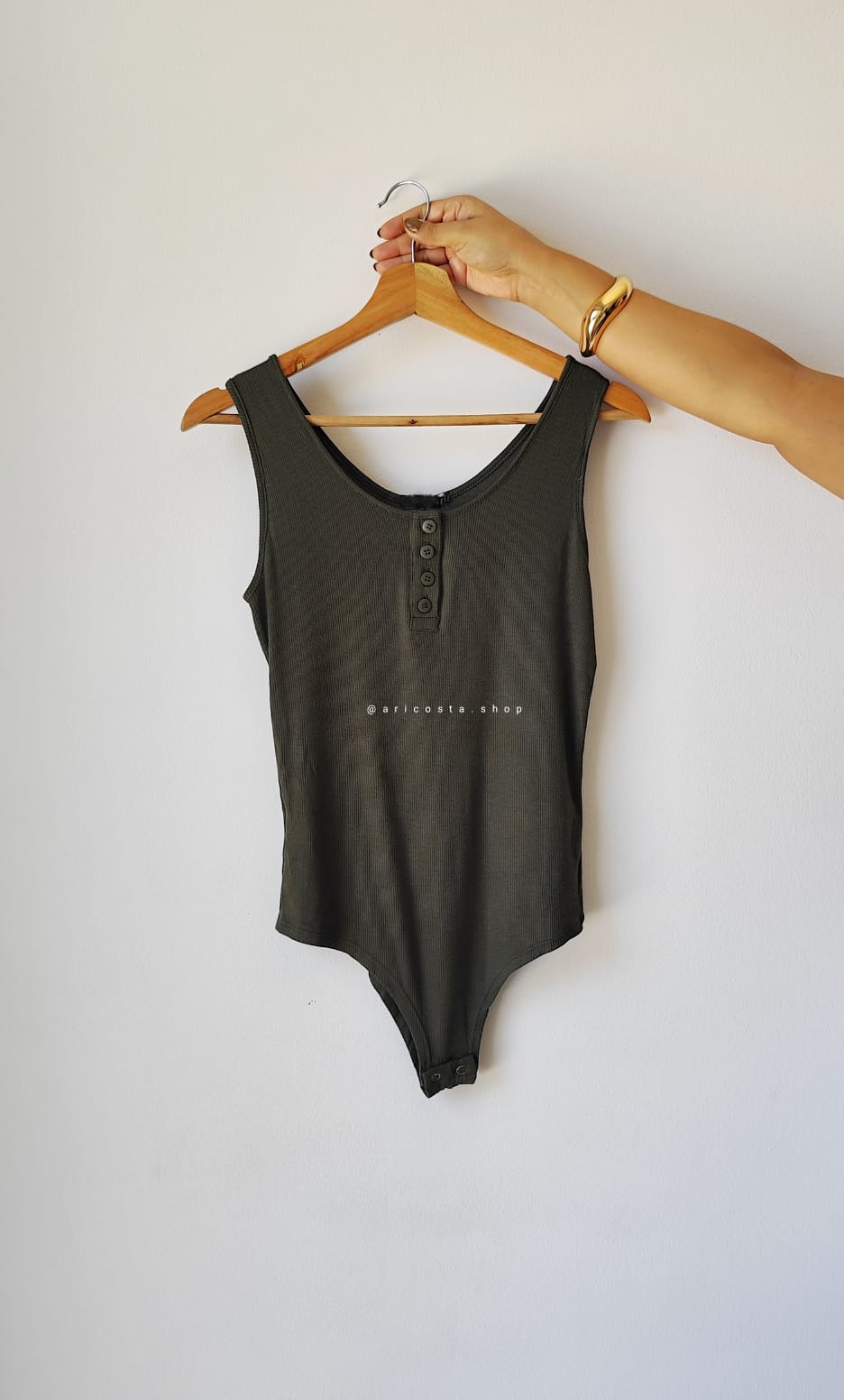 Descrição : Body Fabi confeccionado em ribana de viscolycra, sem mangas com decote redondo mais fechado, botões frontais funcionais, com fecho em clip.