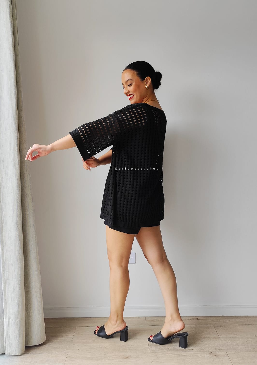 Descrição : Confeccionado no trico modal vazado, modelo oversized