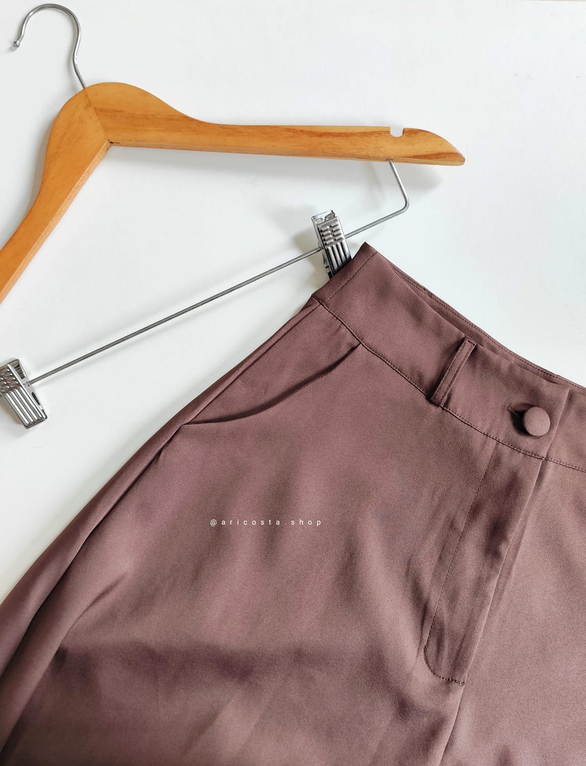 Confeccionada em crepe com caimento alfaiataria, com zíper e botão para fechamento, passante para cinto e bolsos laterais.
